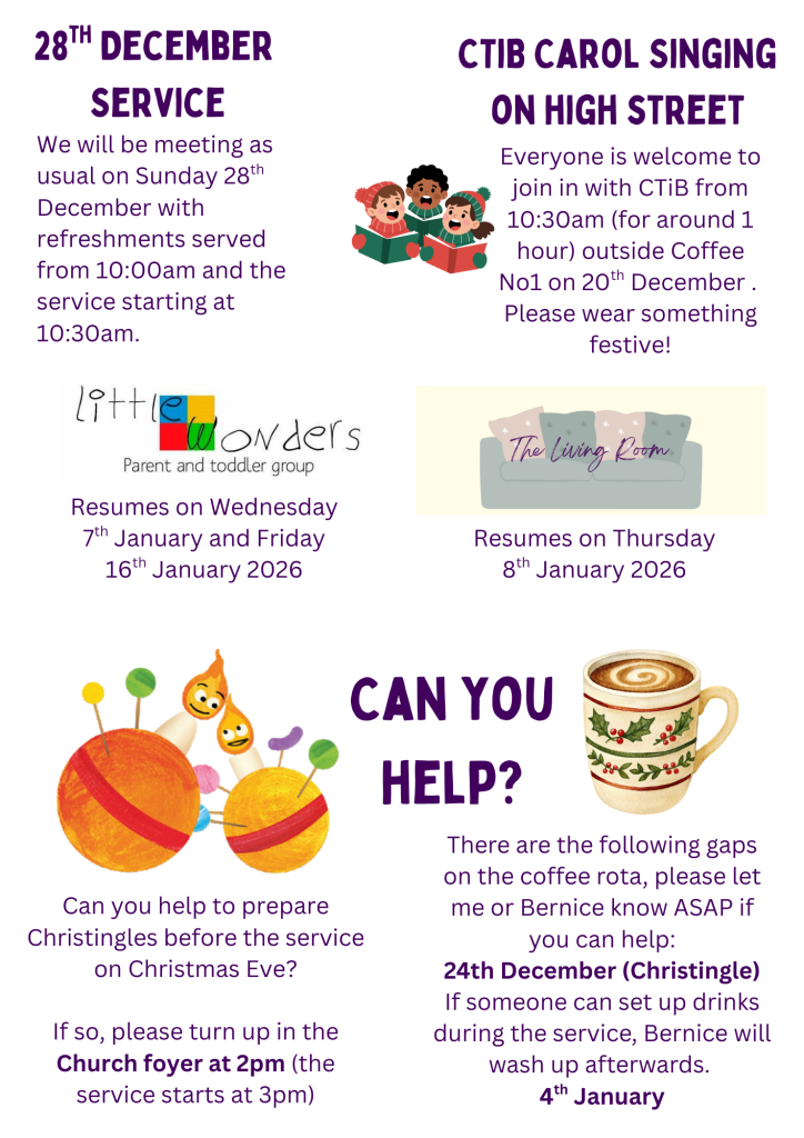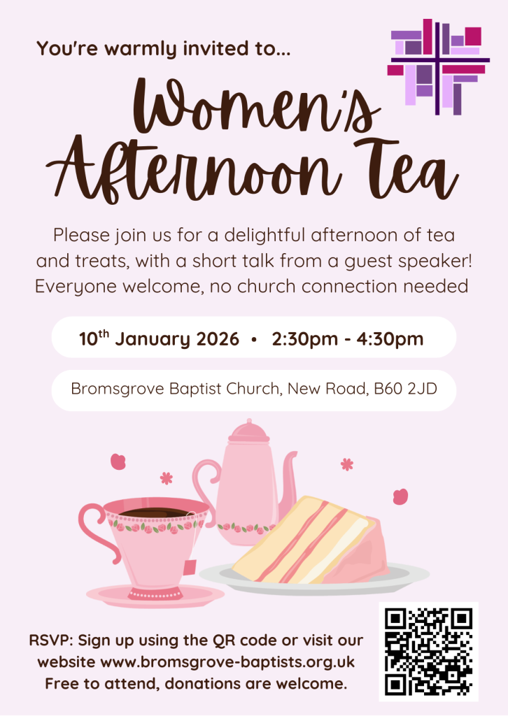Weekly Newsletter. www.bromsgrove-baptists.org.uk/pantomime www.bromsgrove-baptists.org.uk/activities www.bromsgrove-baptists.org.uk/christmas-at-church Women’s Afternoon Tea (10-Jan-2026) ยท ChurchSuite Events